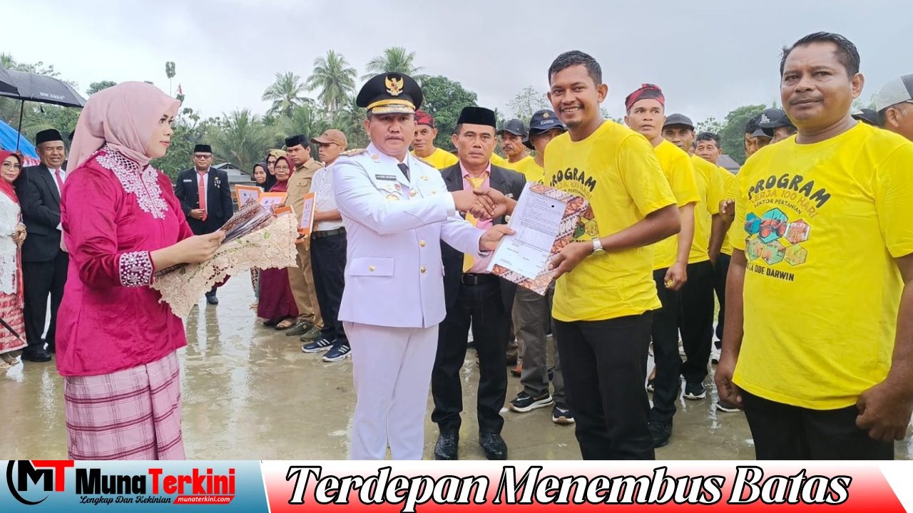 Munaterkini.com – Dalam rangka meningkatkan produktivitas pertanian sekaligus menunjang kesejahteraan petani, Bupati Muna Barat (Mubar) La Ode Darwin menyerahkan bantuan bibit dan peralatan pertanian. Penyerahan dilakukan di Lapangan Wamelai, Kecamatan Lawa, bertepatan dengan momentum peringatan Hari Kemerdekaan 17 Agustus 2025.